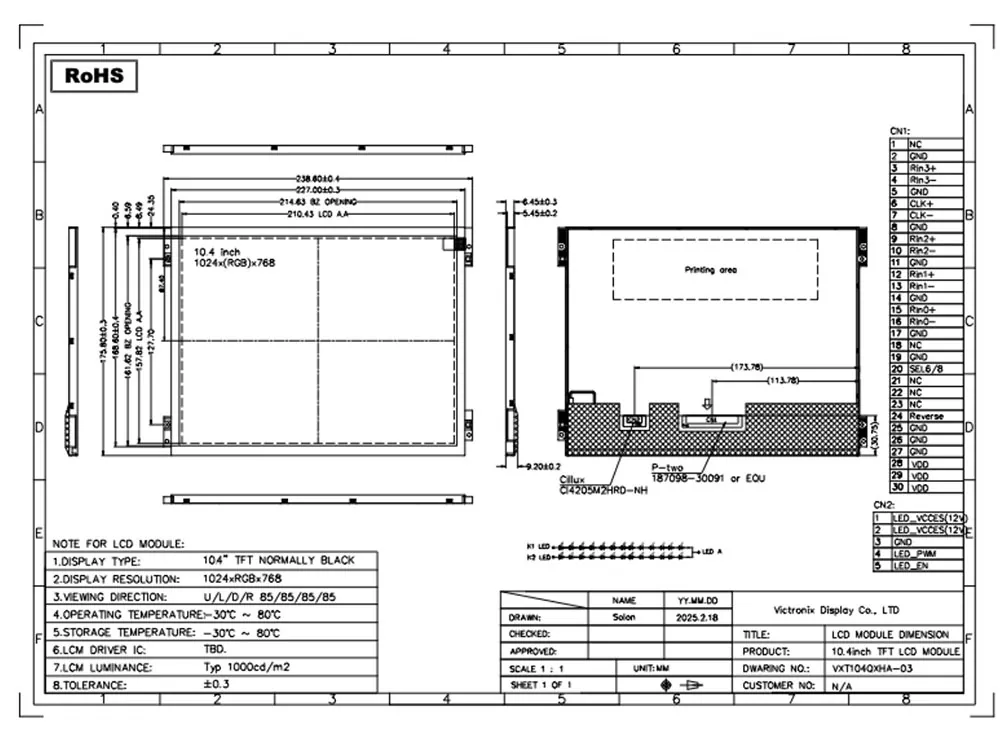 Αυτό το Victronix 10.4 ίντσες 1024 × 768 LVDS High Brightness TFT Module είναι μια ενότητα υψηλής απόδοσης 10,4 ιντσών TFT-LCD που έχει σχεδιαστεί για αξιοπιστία σε βιομηχανικά περιβάλλοντα. Διαθέτοντας πίνακα IPS με ανάλυση 1024 × 768 και 16,7 εκατομμύρια χρώματα, προσφέρει εξαιρετική οπτική σαφήνεια με ευρείες γωνίες προβολής 85 ° (3/6/9/12 οδηγίες). Εκτός αυτού, προσφέρει 1000 CD/m² υψηλή φωτεινότητα, αναλογία αντίθεσης 1000: 1 και ομοιομορφία 80% για σαφή προβολή υπό άμεσο ηλιακό φως. Ως επαγγελματίας κατασκευαστής και προμηθευτής μονάδων TFT στην Κίνα, αυτή η μονάδα TFT Victronix 10,4 ιντσών είναι πλήρως συμμορφωμένη με τα περιβαλλοντικά πρότυπα ROHS, εξασφαλίζοντας την ανώτερη απόδοση εφαρμογών. Προσφέρουμε μια προσαρμοσμένη υπηρεσία για την κάλυψη των αναγκών των πελατών μας.