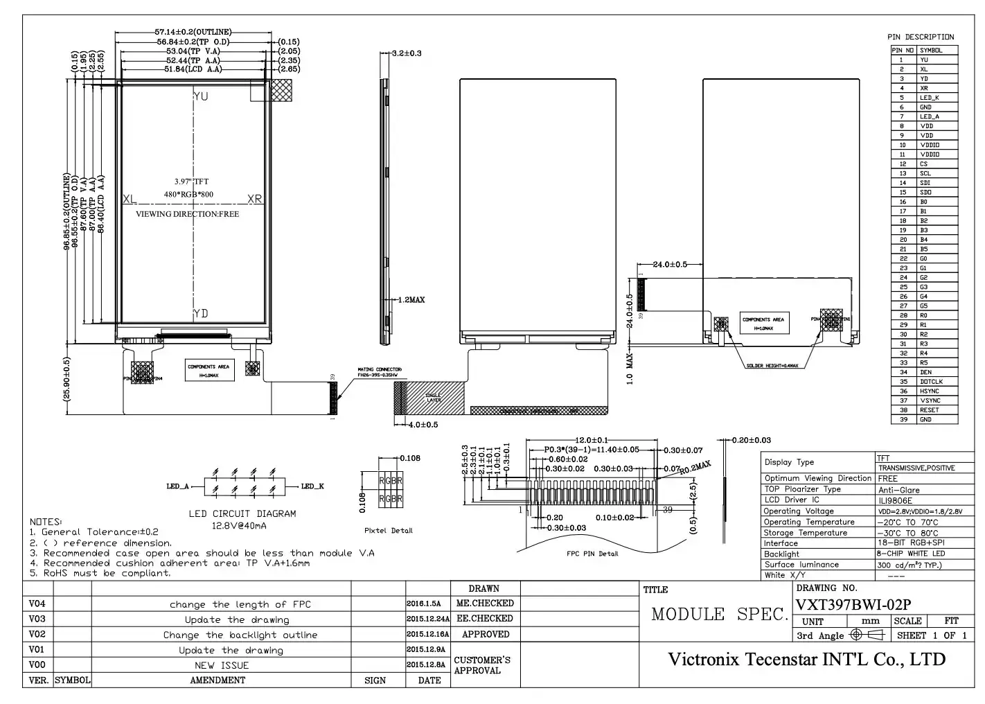 Το Victronix είναι επαγγελματίας κατασκευαστής και προμηθευτής μονάδων TFT που εδρεύει στην Κίνα. Με 18 χρόνια εμπειρίας στον τομέα αυτό, αναπτύξαμε μια ποικιλία μοντέλων. Εκτός από τα τυποποιημένα προϊόντα μας, προσφέρουμε επίσης προσαρμοσμένες υπηρεσίες για την κάλυψη των ειδικών αναγκών των πελατών μας. Αυτή η ενότητα Victronix 3.97 '' '480x800 αντίστασης IPS IPS TFT είναι μια μονάδα βιομηχανικού βαθμού 3,97 ιντσών TFT LCD που διαθέτει πίνακα IPS για ευρείες γωνίες προβολής και ενσωματωμένη οθόνη αφής 4-καλωδίου. Σχεδιασμένο για αξιοπιστία σε απαιτητικά περιβάλλοντα, παρέχει Sharp 480 × 800 ανάλυση RGB με 262k χρώματα, ιδανικό για HMI, ιατρικές συσκευές και φορητά όργανα.