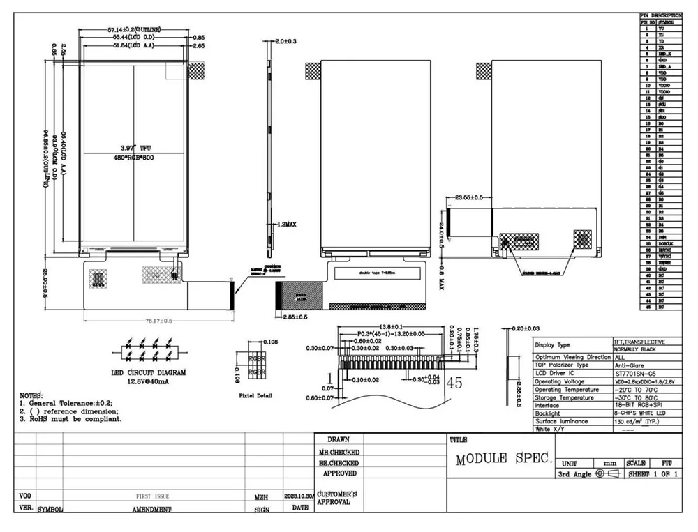 Το TFT LCD είναι ένας τύπος οθόνης υγρών κρυστάλλων που χρησιμοποιεί τεχνολογία τρανζίστορ λεπτής υδατογράφησης για την ενίσχυση της ποιότητας της εικόνας και έχει πολυάριθμες εφαρμογές στην καθημερινή ζωή. Ως επαγγελματίας κατασκευαστής και προμηθευτής μονάδων TFT στην Κίνα, αυτό που κάνει το Victronix 3.97 ίντσες 480 × 800 μεταφυσική IPS TFT-LCD διαφορετική από άλλους κατασκευαστές; Αρχικά, προσφέρει μια τυπική φωτεινότητα 130 CD/m² και ευρείες γωνίες προβολής 85 ° (όλες τις κατευθύνσεις), εξασφαλίζοντας εξαιρετική αναγνωσιμότητα από διάφορες γωνίες. Δεύτερον, ενσωματώνει μια μονάδα οπίσθιου φωτισμού που χρησιμοποιεί λευκό LED 8-die με τυπική διάρκεια ζωής 30.000 έως 50.000 ωρών (έως 50% αρχική φωτεινότητα), εξασφαλίζοντας σαφή ορατότητα σε όλες τις συνθήκες φωτισμού. Εκτός αυτού, υποστηρίζει RGB παράλληλη + 3-γραμμή SPI Serial και ST7701SN-G5 ελεγκτή. Επιπλέον, περνάει αυστηρές περιβαλλοντικές δοκιμές, συμπεριλαμβανομένης της λειτουργίας/αποθήκευσης υψηλής θερμοκρασίας/αποθήκευσης, υγρασίας, θερμικού σοκ και προστασίας ESD (επαφή: 4KV, αέρα: 8kV), εξασφαλίζοντας ότι μπορεί να λειτουργεί άψογα σε ένα εκτεταμένο εύρος θερμοκρασίας (-20 ° C έως +70 ° C).