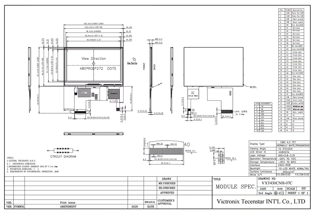 Καθώς η μονάδα TFT χρησιμοποιείται ευρέως στη ζωή, οι κατασκευαστές και οι προμηθευτές είναι όλο και περισσότερο. Τι κάνει αυτό το Victronix 4.3 ίντσες 480x272 χωρητικότητα μονάδα IPS TFT διαφορετική από άλλους κατασκευαστές; Καταρχάς, η τεχνολογία IPS παρέχει σταθερό χρώμα και σαφήνεια σε οριζόντια γωνίες προβολής 60 °/κατακόρυφης προβολής 45 °, τυπική φωτεινότητα 240 CD/m² και υψηλή τυπική αναλογία αντίθεσης 250: 1. Δεύτερον, όχι μόνο υποστηρίζει μια διασύνδεση RGB 24 bit για ζωντανή αναπαραγωγή χρωμάτων 16,7M, αλλά ενσωματώνει επίσης χωρητική επαφή με 10 σημείων με διεπαφή I2C (υποστήριξη INT/RST). Εκτός αυτού, χρησιμοποιεί ένα σύστημα LED 10 DIE με διάρκεια ζωής 50.000 ωρών (διατήρηση φωτεινότητας 50%) για να εξασφαλίσει ότι μπορεί να χρησιμοποιηθεί για μεγάλο χρονικό διάστημα σε διάφορες βιομηχανικές καταστάσεις. Επιπλέον, περνάει αυστηρές δοκιμές περιβαλλοντικού στρες (θερμικό σοκ, υγρασία, αντίσταση πτώσης) για να λειτουργούν αξιόπιστα σε ακραίες θερμοκρασίες (-20 ° C έως +70 ° C).
