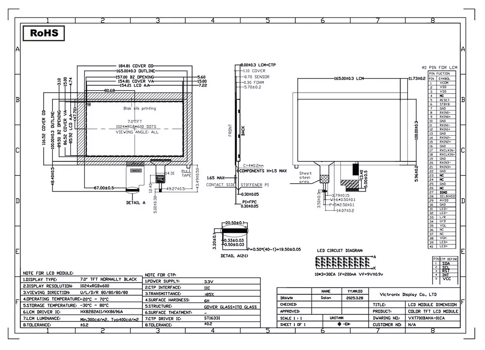 Αυτή η μονάδα TFT 7 ιντσών από το Victronix έχει σχεδιαστεί για βιομηχανικές HMIs, ιατρικές συσκευές, φορητά όργανα, περίπτερα και ενσωματωμένα συστήματα που απαιτούν αξιόπιστη οθόνη υψηλής ορατότητας με διαισθητική αλληλεπίδραση αφής.