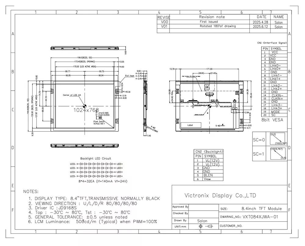 Το TFT LCD είναι ένας τύπος οθόνης υγρών κρυστάλλων που χρησιμοποιεί τεχνολογία τρανζίστορ λεπτής υδατογράφησης για την ενίσχυση της ποιότητας της εικόνας και έχει πολυάριθμες εφαρμογές στην καθημερινή ζωή. Ως επαγγελματίας κατασκευαστής και προμηθευτής μονάδων TFT στην Κίνα, τι κάνει το Victronix 8,4 ίντσες 1024 × 768 IPS TFT LCD διαφορετική από άλλους κατασκευαστές; Πρώτον, προσφέρει μια τυπική φωτεινότητα 500 cd/m², 85 ° ευρείας προβολής γωνιών όλων των κατευθύνσεων και αναλογία αντίθεσης 1500: 1, εξασφαλίζοντας εξαιρετική αναγνωσιμότητα από διάφορες γωνίες. Δεύτερον, ενσωματώνει μια μονάδα οπίσθιου φωτισμού που χρησιμοποιεί 32 λευκό LED με τυπική διάρκεια ζωής 50.000 ωρών (έως 50% αρχική φωτεινότητα), εξασφαλίζοντας σαφή ορατότητα σε όλες τις συνθήκες φωτισμού. Εκτός αυτού, υποστηρίζει τη διασύνδεση LVDS με την προστασία ESD και τον ελεγκτή JD9168S. Επιπλέον, περνάει αυστηρές περιβαλλοντικές δοκιμές, συμπεριλαμβανομένου του θερμικού σοκ (-30 ° C ↔ +80 ° C κύκλοι), της αποθήκευσης υγρασίας (60 ° C/90% RH) και των μηχανικών κραδασμών, εξασφαλίζοντας ότι μπορεί να λειτουργήσει απρόσκοπτα σε ένα εκτεταμένο εύρος θερμοκρασίας (-30 ° C έως +80 ° C).