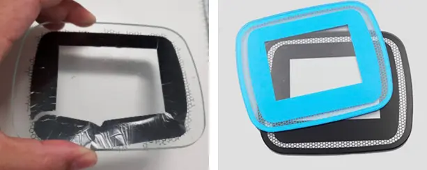 Μειώστε το αδέσποτο φως/λάμψη: Η άκρη του φακού κάλυψης πρέπει συνήθως να εκτυπωθεί με μαύρο ή άλλο μελάνι σκοτεινού περιγράμματος (BMV) για να κρύψει την εσωτερική καλωδίωση, τα εξαρτήματα, το συγκολλητικό στρώμα και να βελτιώσει την οπτική αντίθεση της οθόνης. Το Ant-UV μελάνι είναι συνήθως μια λειτουργική αναβάθμιση αυτού του μελανιού των συνόρων.